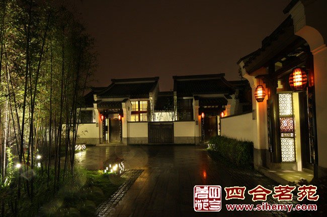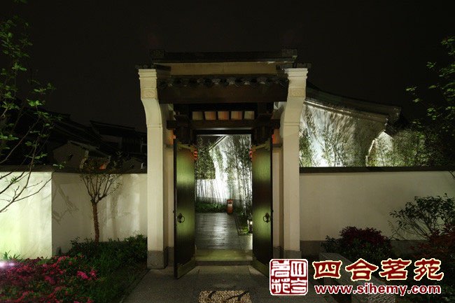 徽派建筑與北方建筑大不相同,粉墻黛外院內(nèi)曲徑通幽,具有南方園林的某種特色,沒有過多的彩繪描金,但是不失高貴典雅。小橋流水,荷塘月色別具一番風(fēng)趣。 ![]() 院門口夜景 ![]() 拱橋夜景 ![]() 大門入口 |